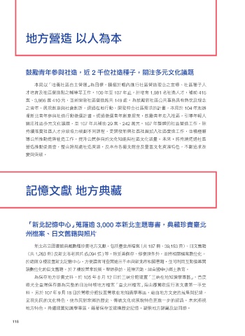 (共 1,263 冊)及新北市老照片 (5,094 張 ) 等,除妥善保存、修復原件外,並將相關檔案數位化。