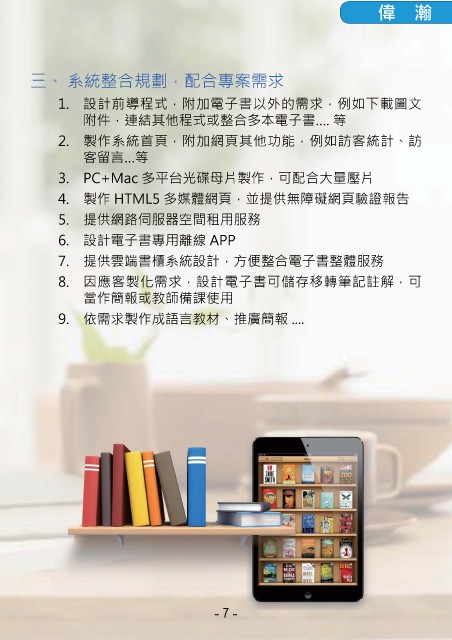 7. 提供雲端書櫃系統設計,方便整合電子書整體服務