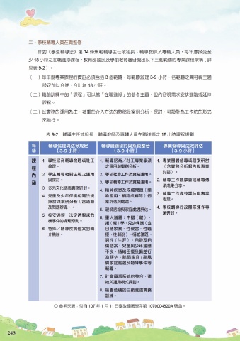 表 9-2 輔導主任或組長、輔導教師及專輔人員在職進修之 18 小時課程規劃