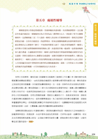 輔導外,也請輔導處(室)介入協助。輔導人員在和小芳個別晤談時,發現其近期曾