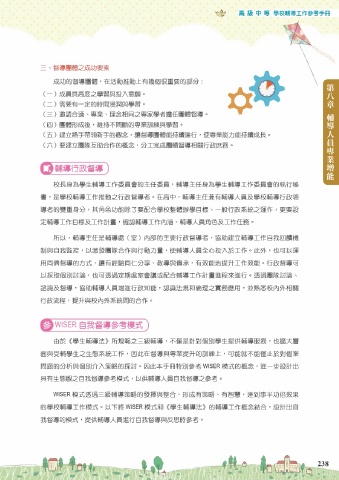 導者的雙重身分,其角色功能除了要配合學校整體辦學目標、一般行政系統之運作,更要設