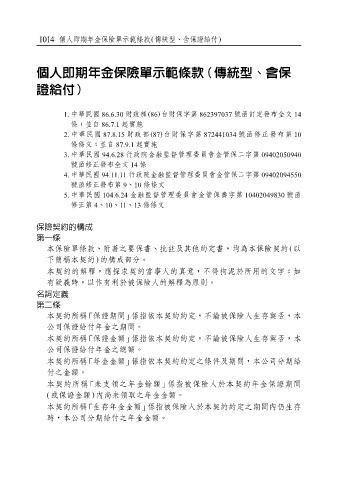 1014 個人即期年金保險單示範條款( 傳統型、含保證給付)