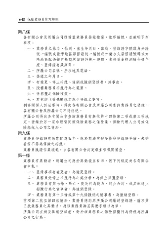 三、 業務員有第七條、死亡、喪失行為能力、終止合約、或其他終止