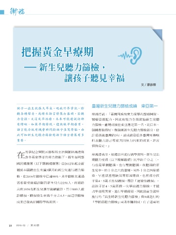 力受損,又沒及早治療,未來可能連說話都 醫療資源配合,因此有能力全面實施新生兒聽