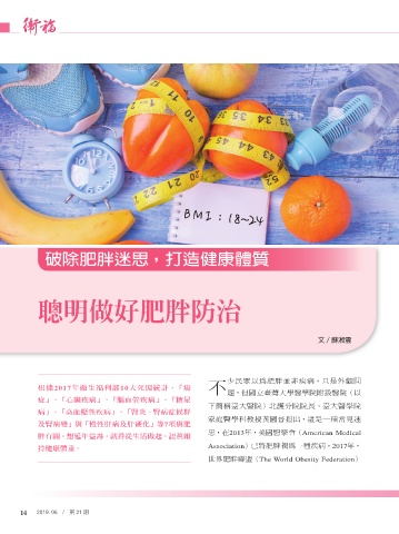 持健康體重。 Association)已將肥胖視為一種疾病,2017年,