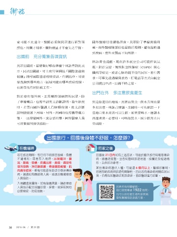 病,請通知飛機服務人員,或速洽機場檢疫 現,仍需告知醫師近期旅遊史,協助醫師進行診斷。
