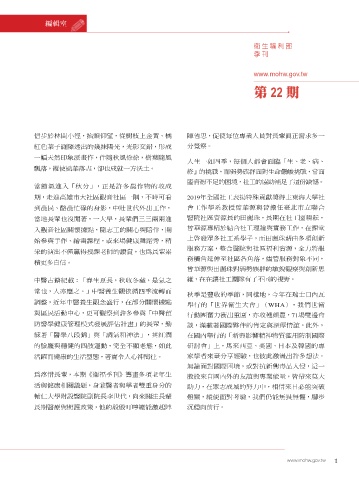 調整,近年中醫養生觀念盛行,在部分關懷據點 舉行的「世界衛生大會」(WHA), 我 們 世 衛