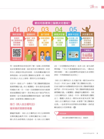 參與諮商,並完成預立醫療決定簽署,同一時段 到來,不再需要痛苦走向死亡。