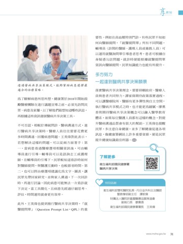 適合的治療策略。 落實醫病共享決策理念,需要仰賴政府、醫療人