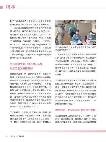 時為單位」,指揮中心做事不能延宕,一件事耽 防疫工作上默默付出,希望提升部立醫院形象,