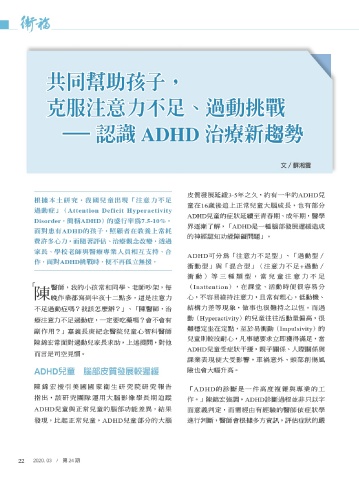「 醫師,我的小孩常和同學、老師吵架,每 (In attention),在課堂、活動時便很容易分