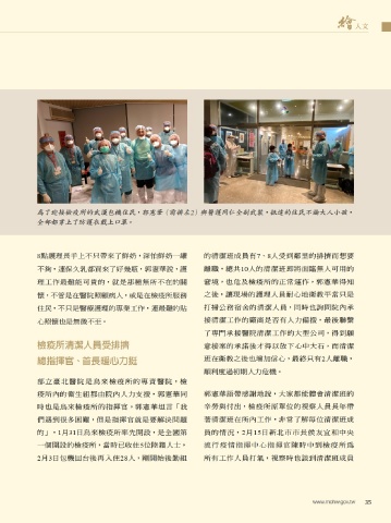懷,不管是在醫院照顧病人,或是在檢疫所服務 之後,讓現場的護理人員耐心地衛教平常只是