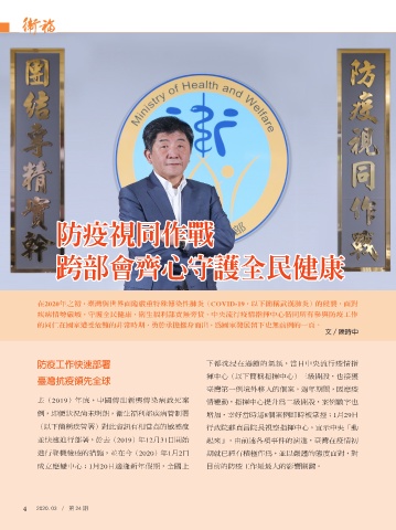 疾病情勢嚴峻,守護全民健康,衛生福利部責無旁貸。中央流行疫情指揮中心偕同所有參與防疫工作