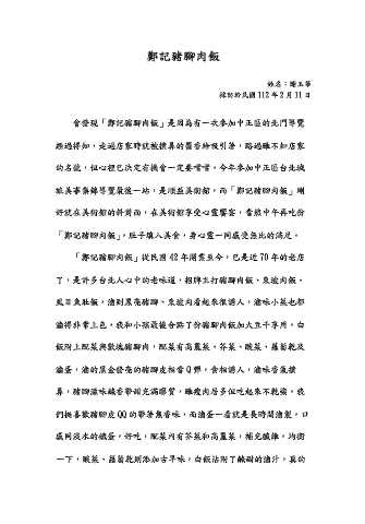 會發現「鄭記豬腳肉飯」是因為有一次參加中正區的北門導覽