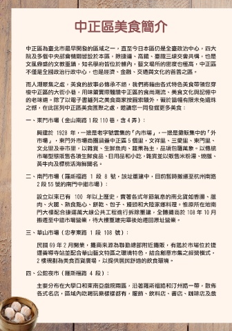 梭中正區的大街小巷,用味蕾實際體驗中正區的食尚潮流、美食文化與記憶中